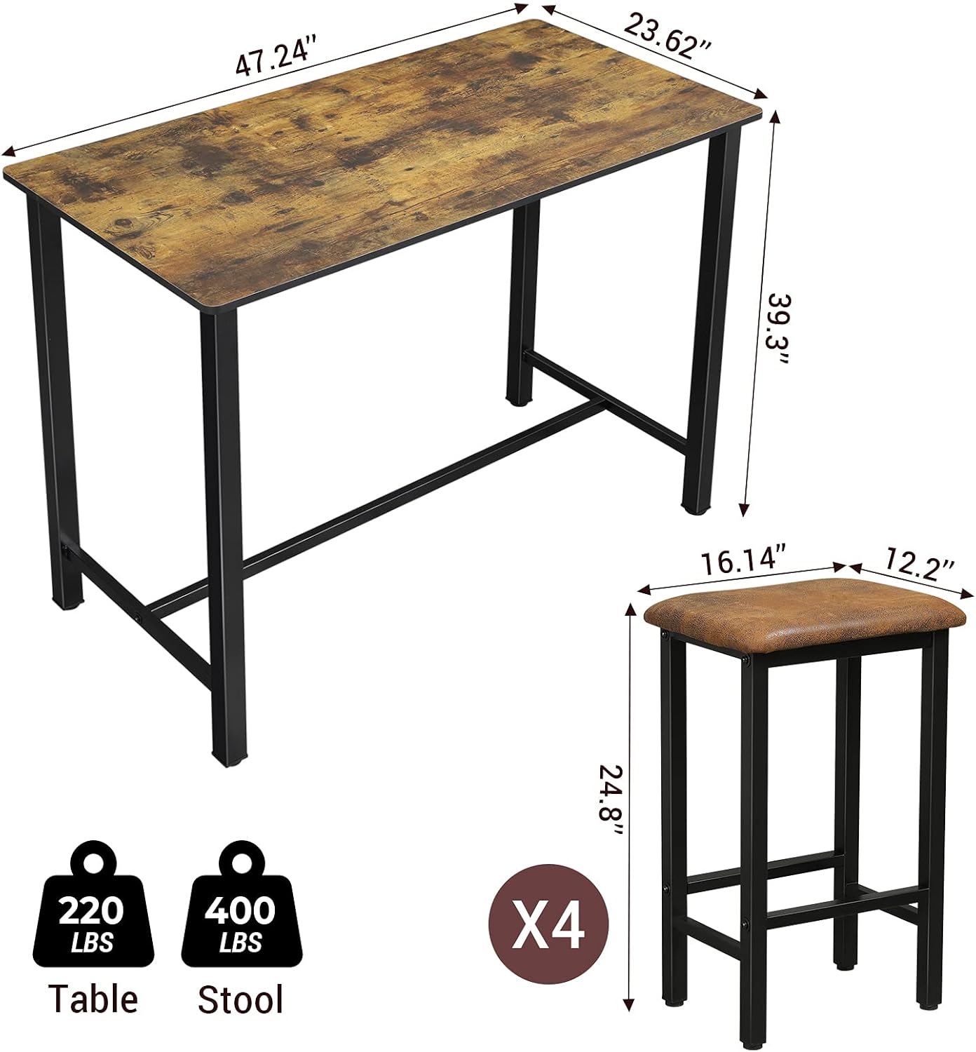 High Kitchen Table With Bar Stools / Nancy S Clifton Bar Table With Bar Chairs Bar Tables Wood Bar Stools Industrial Brown 120 X 60 X 90 Cm The Most Beautiful Furniture 1 In Furniture Nancy Homestore : 34l x 34w x 39h inches.. Counter stools have a seat height of 24 to 27 inches high for table surfaces that are 36 inches high. What is the cheapest option available within wicker bar stools? White bar stools can potentially blend with a variety of styles but are better suited for less frequent use or homes without small children. The 32 tall table is built on a trestle base with a sleek silver hue for modern style. Maison arts bar height bar stools set of 2 with back 30 inch tall stools for kitchen island modern bar chairs high upholstered barstools, 300lbs bear capacity, light grey 4.5 out of 5 stars 154 $154.99 $ 154.